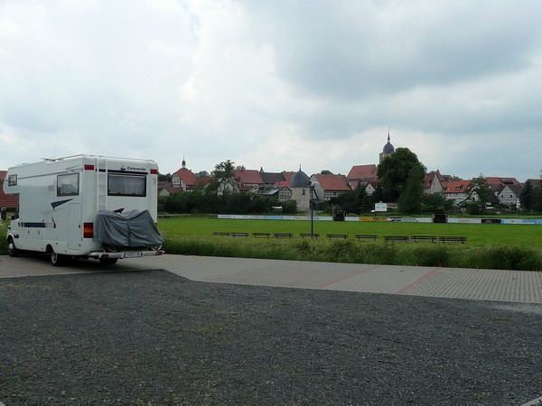 Stellplatz direkt am Sportplatz mit schöner Sicht auf Heldburg und auch auf die Feste (abends angestrahlt), leider auch in der Nähe der Landstr. V+E sind vorhanden, Strom ebenfalls, der SP selbst ist kostenlos. Geschäfte sind fussläufig zu erreichen, Gaststätte im historischen Stadttor und eine "Pizzeria" an der Landstrasse. Die Veste soll bis 2013 (?) zum deutschen Burgmuseum ausgebaut werden.