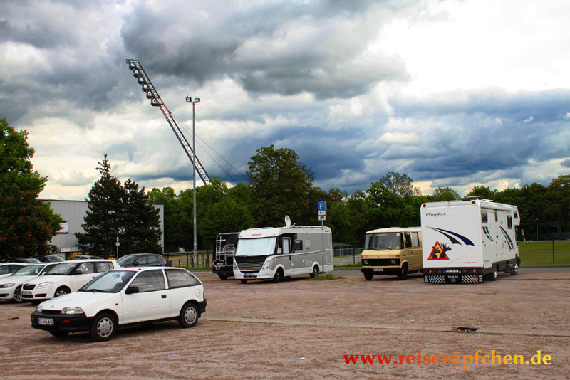 7 Stellplätze am äußersten Ende eines großen Parkplatzes gegenüber der Thüringen-Halle und neben Stadion des FC Rot-Weiß Erfurt. Nachts relativ ruhig - es sind nur die Geräusche von der Werner-Seelenbinder-Straße zu hören. Unter der Woche füllt sich der Parkplatz ab 7 Uhr, da er von Angestellten der nahe gelegenen Landesministerien genutzt wird. Zudem dient er auch als P&R Parkplatz für die Straßenbahn. Stellplatzuntergrund: Schotter-Erde. Straßenbahnhaltestelle 100m entfernt. Hier mal noch ein Bild (Stand Mai 2014): ![]() Alles unverändert in 2015. Kleiner Hinweis: Wer vorhat, an Heimspieltagen des FC Rot-Weiß anzureisen, sollte frühzeitig erscheinen - es wird voll. Wer Bedenken wegen der nicht immer ganz nüchternen Fans hat, sollte zumindest die Spielzeit (plus / minus zwei bis drei Stunden) meiden. Ansonsten ist der Platz perfekt gelegen, um zu Fuß, mit dem Rad oder mit der Tram in die Innenstadt zu gelangen. Lediglich die fehlende Entsorgungsmöglichkeit scheint mancheinen wohnmobilen Gast dazu zu verleiten, sich in die Büsche zu schlagen --> :bindagegen: ! ![]() |
