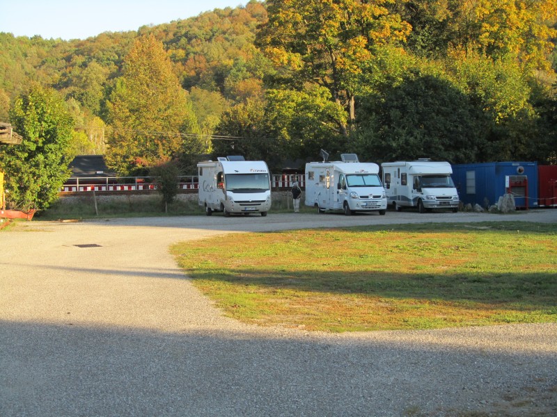 Stellplatz Gars am Kamp ( aufgelassenes Sägewerk ) mit Blick zur Kirche und zur Burg ..Strasse heisst Gföhlerstr. 3 Meter hinter den Stellplätzen fährt ein Zug, tagsüber z. Teil 3-4 mal die Stunde, morgens ab ca. 5 Uhr, abends bis ca. 23 Uhr. Für Lärmempfindliche wie uns ist das nichts. Dafür gibt's gratis Strom; wir sind trotzdem weitergefahren, auch wenn der Ort ganz nett ist.