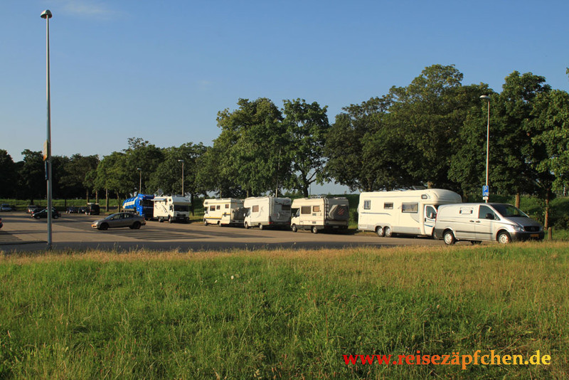 Leicht schräg gelegene Stellplätze seitlich auf einem PKW-Parkplatz unweit vom Kanal. Innenstadt 3min entfernt. Kostenlos mit max. Aufenthaltsdauer von 2 Tagen. Stand 07/2013 ![]() |