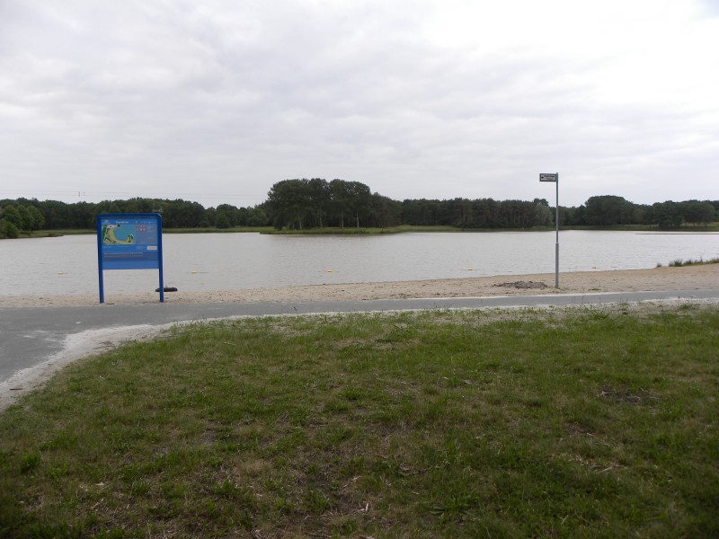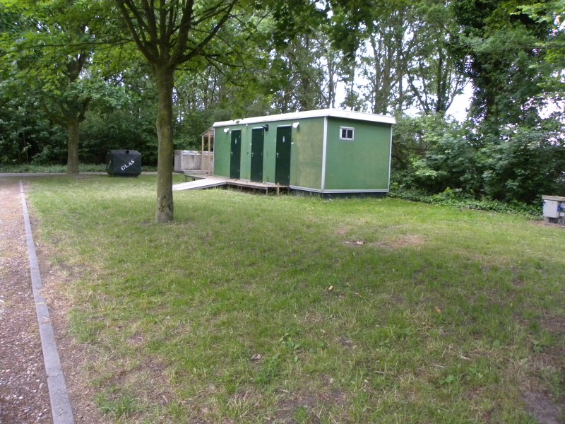 Es gibt eine Holzbaracke mit Toiletten und Duschen, sehr einfach gehalten aber sauber. Ausserdem gibt es einen Chemiekloausguss Marke Eigenbau und eine Mülltonne. Kosten: 9,-€ inkl. Strom, Toiletten, Duschen und Internet. Für einen guten Fernsehempfang muss man sich eine Lücke zwischen den Bäumen suchen. Der See mit Sandstrand ist direkt nebenan, ca. 300m weiter gibt es einen kleinen Imbiss an der Wasserskistation. Mit (und natürlich auch ohne :D ) Hunden kann man hier schöne Wege rund um die Seen laufen. Mit dem Fahrrad ist man in ca. 10 Minuten (knapp 3km) im Zentrum, wo es neben vielen anderen Geschäften auch einen großen Supermarkt (Albert Heijn) gibt.