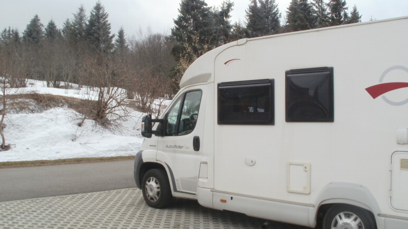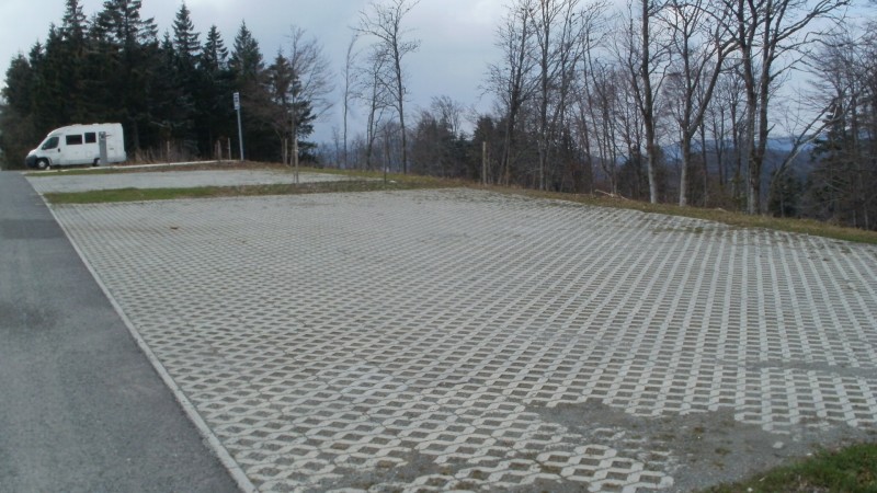 10-12 Plätze auf Rasengittersteinen , relativ eben . Mit schönem Blick ! Das Restaurant " La Musardière " sieht aus wie schon länger geschlossen. Weiter hinten , am SP vorbei , ist wohl in der Sackgasse ein Skilokal.
