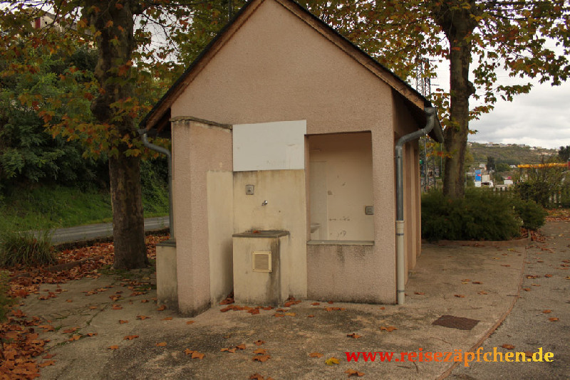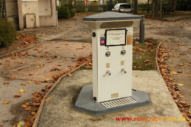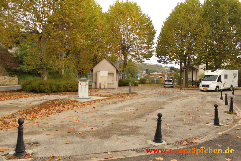 Stellplatz direkt an der D809 und den Bahngleisen gelegen. Max. 4 Plätze, kostenlos. Sanitärgebäude mit Toilette vorhanden. Etwas enge Einfahrt.
