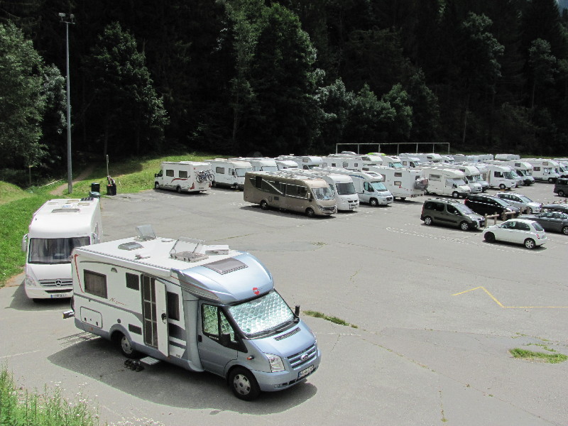 Parking du Grépon an der D1506. Es handelt sich um einen riesigen Parkplatz oberhalb der Seilbahn -Talstation zur Aiguille du Midi. Gebühr: 10 Euro an einem Kassenautomaten am Ausgang Entsorgung und Wasserentnahme: versteckt in einer Ecke und sehr unsauber... Gebühr beträgt : 12€ / 24 Std.