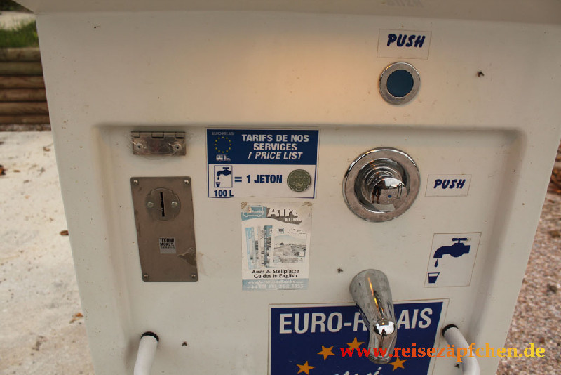 Hier gibt es einen großzügig angelegten und fast ebenen Stellplatz direkt im Ort. An der Einfahrt befindet sich die V/E-Station (Entsorgung kostenlos - Frischwasser nur via Jeton). Keine Stromsäulen auf dem Platz.