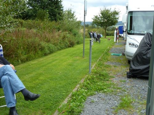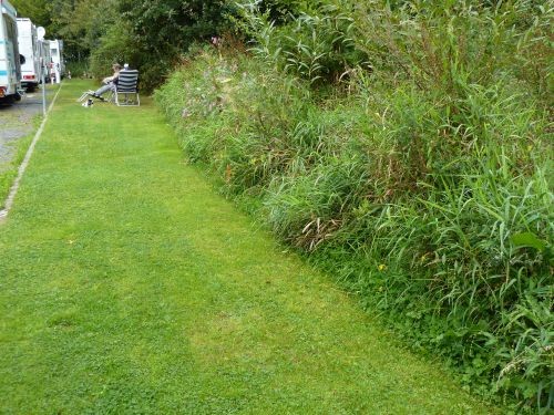 Der Stellplatz wurde inzwischen etwas hergerichtet und es gibt einen benutzbaren Grünstreifen an der Seite. Dort war früher nur Gestrüpp und Morast.