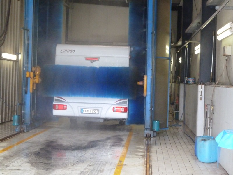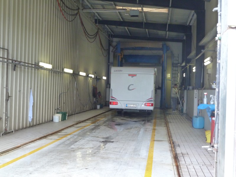 womo ist sauber und heile aus der waschtrasse gekommen. der chef hat die anlage von hand gefahren und vorher das womo mit hochdruckreiniger und handwäsche bearbeitet. die wäsche hat 30 min gedauert und 25€ gekostet. Hallo Volker,