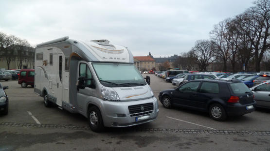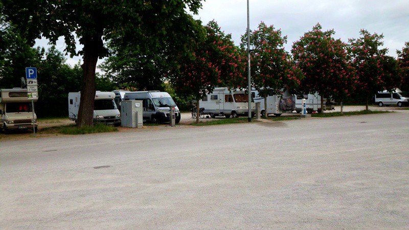 ^Der Stellplatz im hinteren Teil des Großparkplatzes