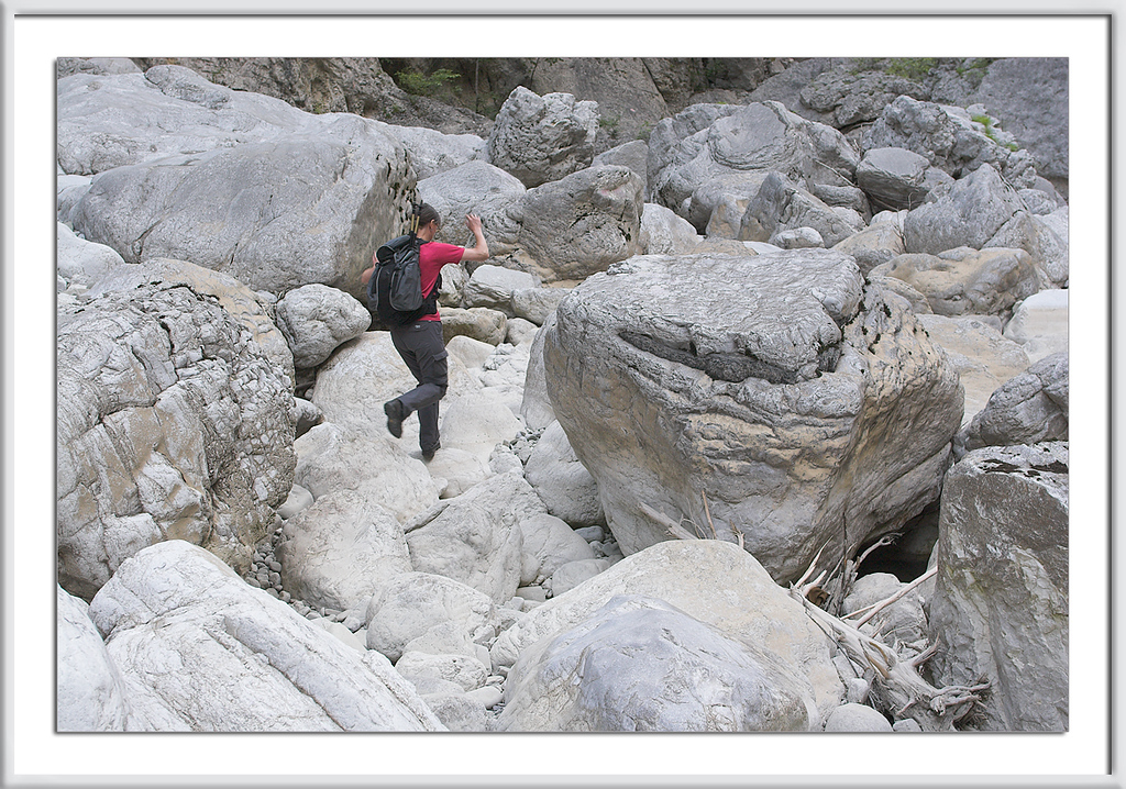 Uns wurde erzählt, der Wanderweg sei so angelegt, daß man nie im Flußbett gehen muß, das fanden wir schade, denn wir wollten schon ganz nach unten, deshalb haben wir uns verlaufen.