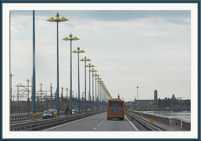 Wir fuhren ein großes U, es endete kurz vor Venedig. Auf der schmalen Zufahrt zur Stadt drängt sich alles, was der Beförderung dient, auf engstem Raum.