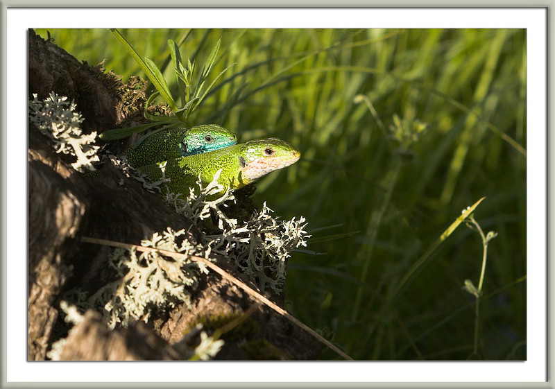 Ach so, die Bilder: Smaragdeidechsen, die hintere ist das Männchen, sieht man doch - oder?