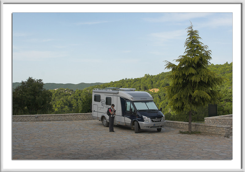 Langsam wurde es Zeit, den Schlafplatz aufzusuchen. Etwa in der Mitte zwischen Monodentri und dem Vikos Balkon zweigt eine kleine, unbefestigte Straße ab, welche das Womo nach ca 100m durch Büsche der Sicht von der Straße her entzog, aber das war nicht wirklich nötig, auf der Straße zum Balkon, einer Stichstraße, war nachts so gut wie kein Verkehr.