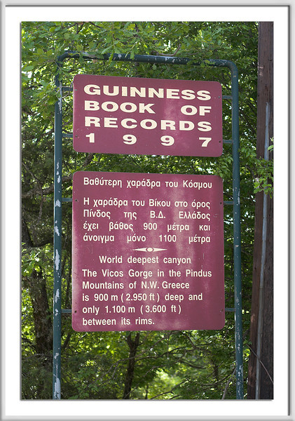 Eine Besonderheit der Vikosschlucht sind die extrem steilen Schluchtwände, dies brachte ihr einen Eintrag in das Buch der Rekorde ein.