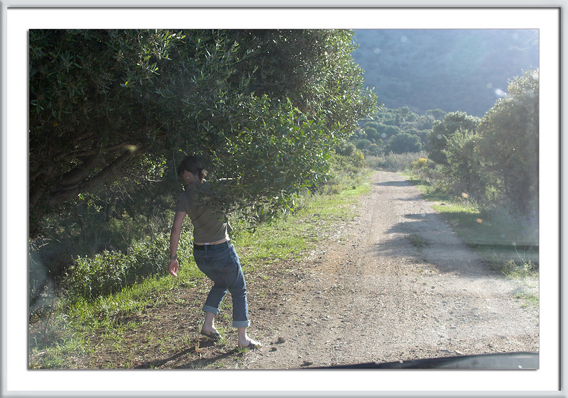 Wir fuhren zuerst nach Monodentri, um den Parkplatz zu erkunden. Das war nicht ganz so einfach wie ich dachte, führte doch der ausgeschilderte Weg durch den oberen Teil der am Hang gelegenen Ortschaft, und da gab es keine Spur von einem Parkplatz. Wir fuhren ca. 2 km zurück und entdeckten eine Abzweigung, welche uns über eine sehr enge Straße an den hangabwärts gelegenen Teil von Monodentri brachte. Die Auffahrt durch den Ort zum Parkplatz war schweißtreibend, die Straße stieg sehr steil an, einmal angehalten, war ein Anfahren nur mit stinkender Kupplung möglich (die Transe, mit dem lang übersetzten ersten Gang, wollte es wirklich wissen), aber der Parkplatz selbst war groß genug und er war eben.