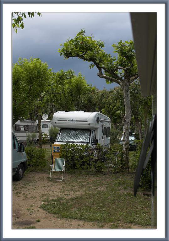 Vom Campingplatz aus sahen wir über den Alpen hohe Gewittertürme stehen, gegen später wurde auch über uns der Himmel dunkel und in der Nacht regnete es heftig.