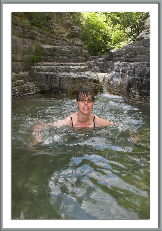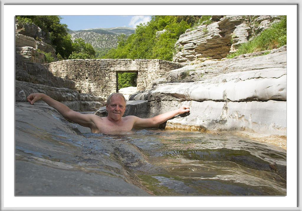 Die Straße klettert in verwegenen Serpentinen nach oben, Richtung Macro Papingo, und wir mit ihr. Zwischen Macro- und Micro Papingo findet sich die zweite Wasserattraktion, das schönste Naturfreibad, das ich je geniesen durfte.
