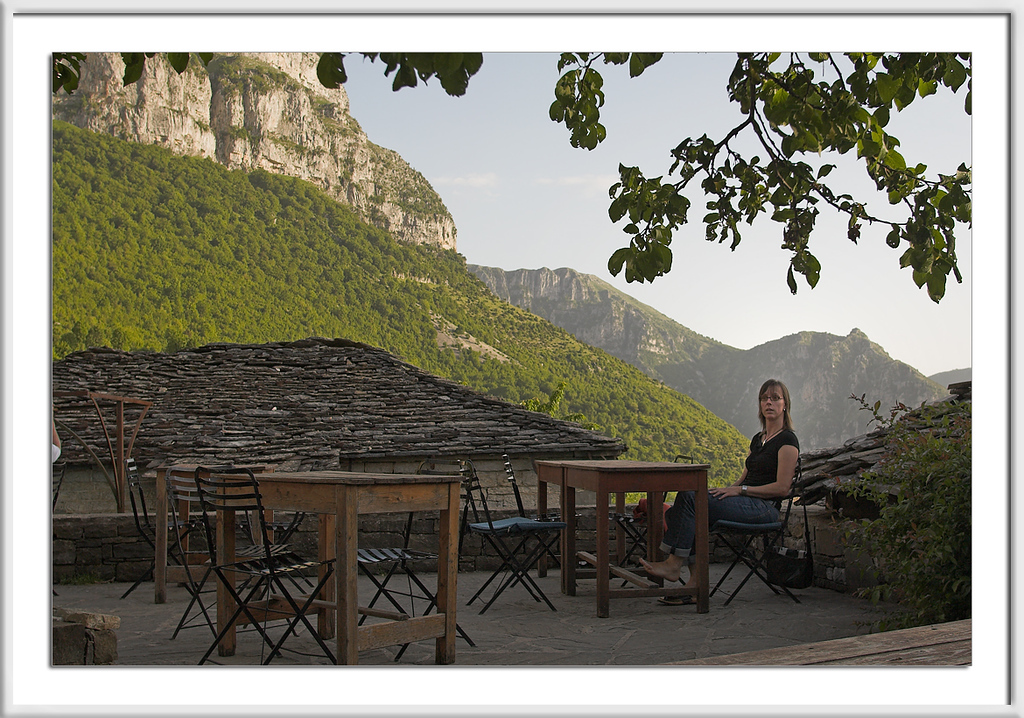 Tavernen fanden wir keine, es gibt nämlich nur eine einzige, na gut, dann nehmen wir eben diese. Das Essen war wirklich gut, und wenn man sich im Preis ein Ticket für den tollen Aussichtsplatz enthalten vorstellt, war es geradezu billig.