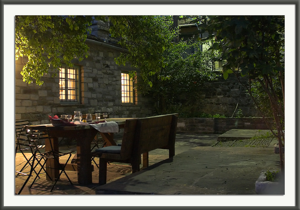 Die Essen ist verzehrt, die Gläser sind leer und der Tag ist hinter den Bergen verschwunden.