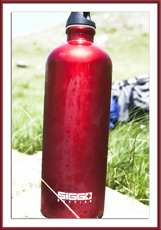 Schnell waren die Flaschen gefüllt. Das Wasser war so kühl, daß die Alu-Flasche richtig ins Schwitzen geriet.