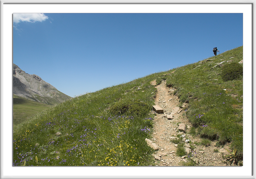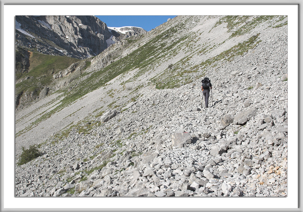 Nach einer kurzen Verdauungspause versahen wir die Rucksäcke wieder mit Beinen, und weiter ging es, zu meinem Leidwesen bergab!!