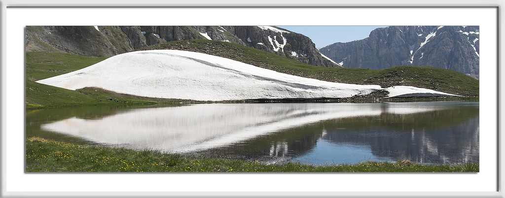 Unten angekommen hatten wir in alle Richtungen fantastische Ausblicke. Im See spiegelten sich die Berge und der blaue Himmel.