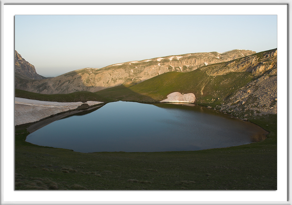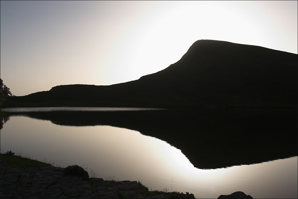 Ein Blick zurück nach Osten, immer noch erreichen die Sonnenstrahlen nicht den See.
