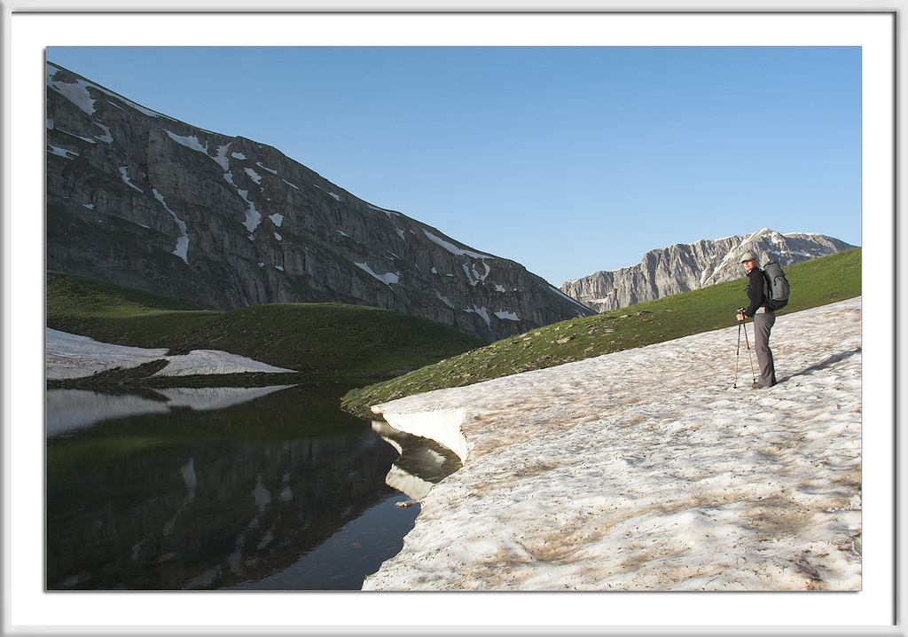 Den Rest des Tages verbrachten wir damit, die Landschaft um den See herum zu erkunden, den Molchen, von denen es im See nur so wimmelte, zuzusehen, ab und zu kamen Wandersleut aus aller Herren Länder vorbei, die aber nur kurz rasteten und danach weiterzogen, mit denen haben wir "kommuniziert", viel Zeit verbrachte ich damit, den vereinzelt hochquellenden Wolken nachzuschauen.