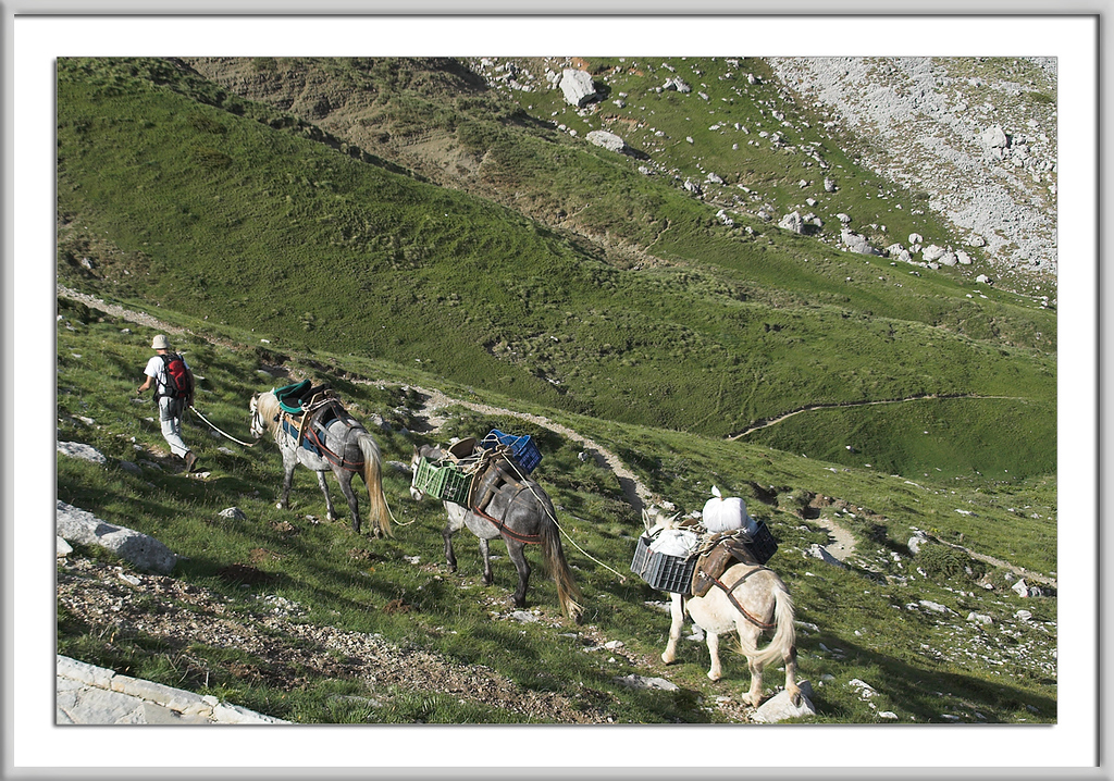Da das Warenlager auch andere Defizite aufzuweisen schien, war für die Betreiber der Hütte der nächste Einkaufsbummel angesagt. Jetzt erfuhren wir auch, welche Aufgaben das Muli und die Pferde hatten. Dafür, daß jedes Ei, jeder Pilz, jedes Körnchen Salz auf diese urtümlich anmutende Weise zur Hütte geschleppt werden müssen, waren die Preise der Mahlzeiten so gut wie geschenkt.