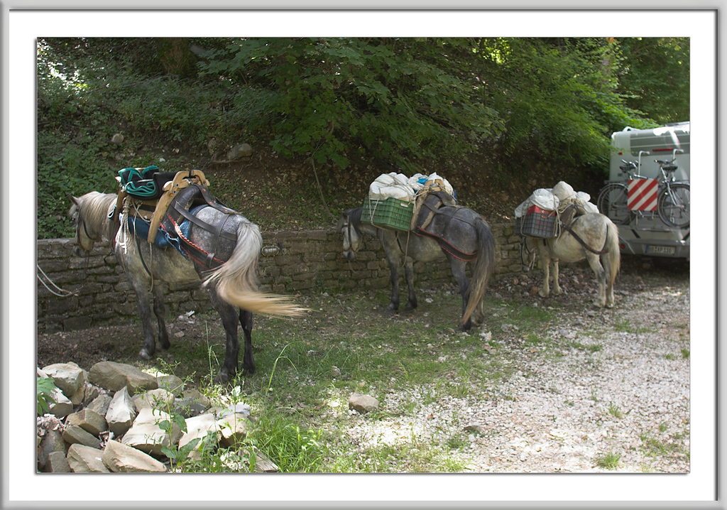 Wir standen noch nicht lange, da kam eine nette junge Dame vorbei und tat, was sie als Parkwächterin tun mußte. Sie klärte uns auf, daß wir uns ab dem Ostufer des Voidomatis im Nationalpark befänden und campieren hier verboten sei. Was soll man machen, sie hatte einfach Recht, wir haben das zu akzeptieren, beschlossen wir und suchten in den Reiseunterlagen nach einer Alternative.