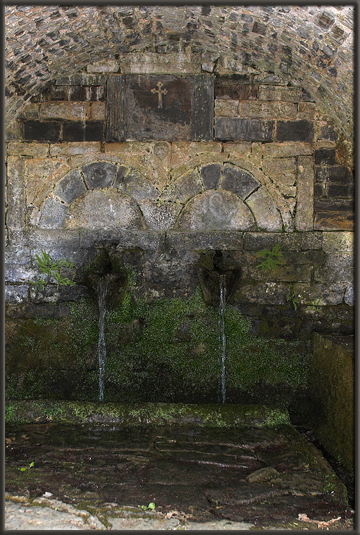 Die in der Karte vermerkten Quellen haben wir alle vorgefunden, und sie führten alle auch Wasser, mal weniger, meistens überreichlich. Sie füllen die Tröge, damit auch die Vierbeiner das Wasser geniesen können. Außer Gelbbauchunken, die in den Trögen "toter Mann" spielten (O-Ton Waldameise), haben wir jedoch keine Tiere an den Tränken vorgefunden.