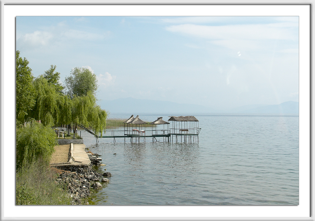 Der Ostteil des Sees liegt in Mazedonien (ehemaliges Jugoslawien), der Westteil in Albanien.
