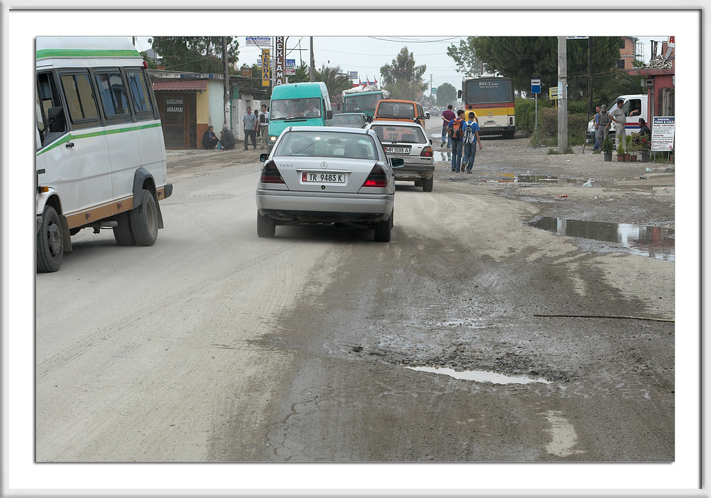 Die meisten Bilder, die wir von Albanien mitgebracht haben, wurde während der Fahrt durch die (getönten) Scheiben aufgenommen, das erklärt auch den Farbstich.
