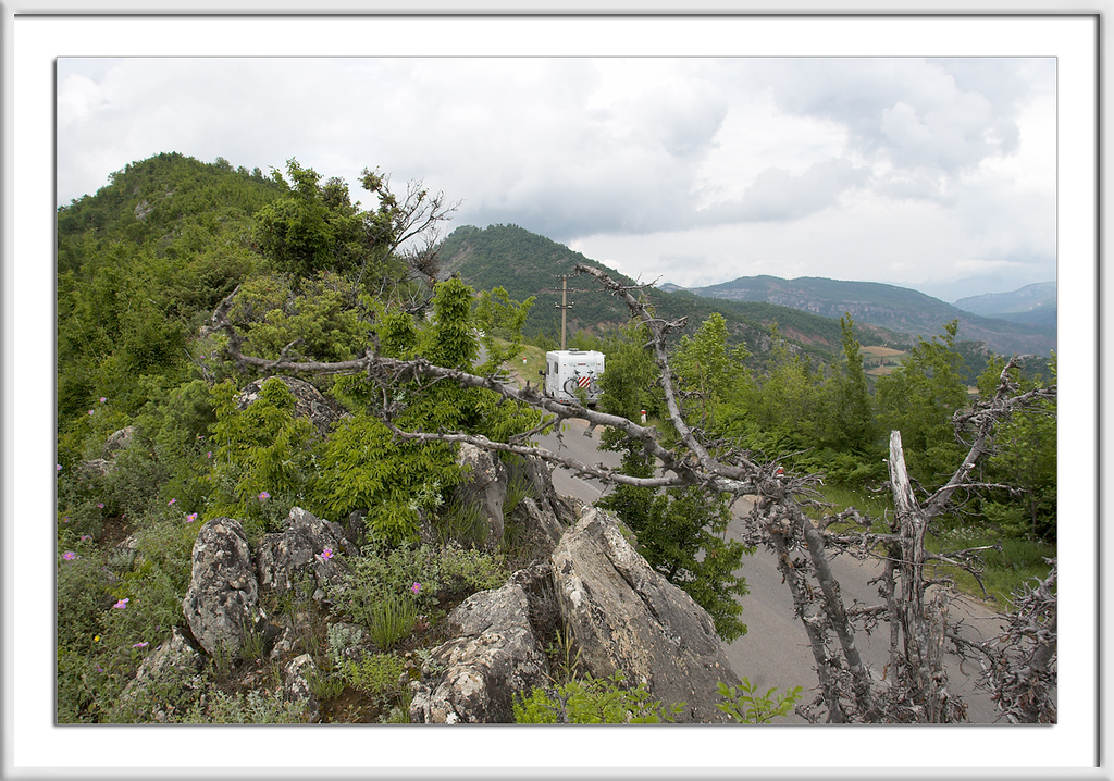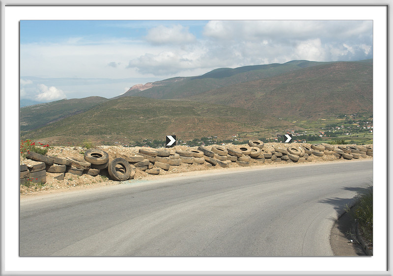 Nicht weit nach Elbasan, immer noch in Richtung Westen fahrend, kletterten wir schlangengleich steil bergauf. Die Kurven waren mehrfach abgesichert, physisch sowie metaphysisch.