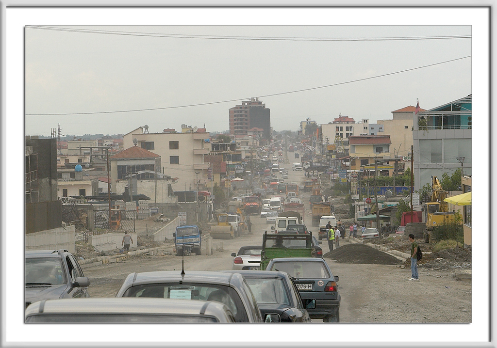 Durch langsam zunehmenden Verkehr sowie stetig zunehmender Verbauung kündigte sich Tirana an.