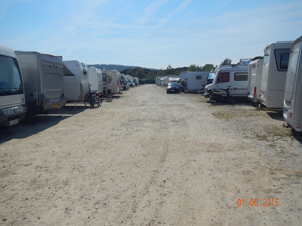 wir waren im Juni dort, ich habe ein Bild des Stellplatzes, leider in der Dämmerung abends aufgenommen. Ich habe es etwas aufgehellt und geschärft, man sieht sehr gut, wie beengt der Platz ist. Mehr als halbe Markise ausfahren geht nicht, die Wand des Nachbarwomos strahlt die Hitze zurück, Fazit: uns hat es auf der Bonne Terrasse besser gefallen, man kann dort wenigstens richtigen Abstand zum Nachbarn halten. Ingrid hallo,