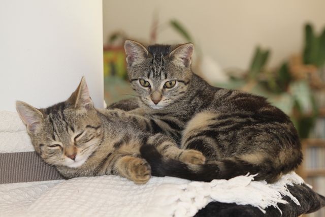 Es sind zwei Tigerinen zu bewachen, beide kamen sie von den Verein für Strassenkatze in Köln und sind seit zwei Jahren im neuen Zuhause.