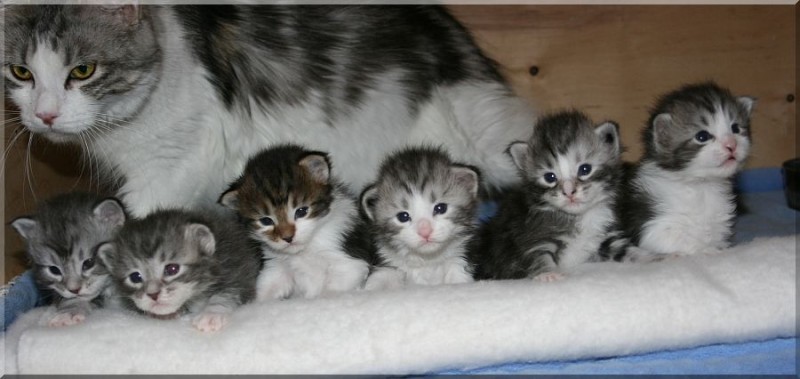 Es war ein Wurf mit nur drei Kaetzchen, wovon eines gleich nach der Geburt gestorben war.