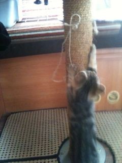 Sehr gute Idee mit dem Kokosband, aber für den Sichtschutzstoff Deines Hubbettes sehe ich schwarz, für Miezen in diesem Alter gibt es keine Tabus. :?