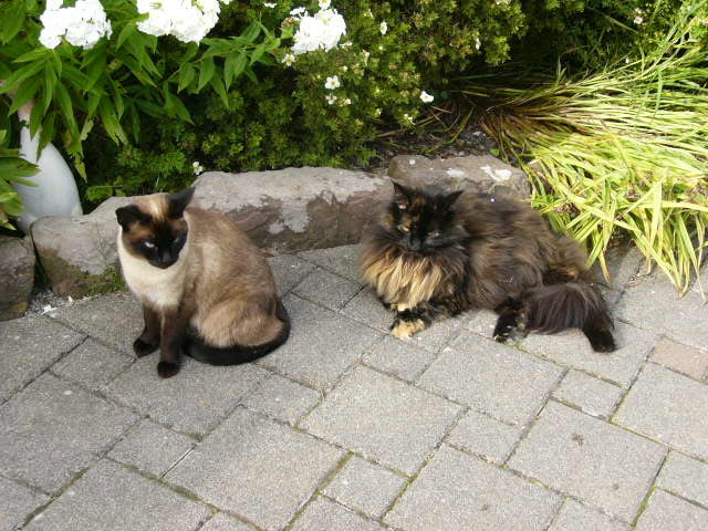 Die beiden sind Lilu (Maine Coon) und Mieze (Siam). Mieze wurde zusammen mit einem Siamkater (Anton) vor ca. 8 Jahren bei uns ausgesetzt. Wir haben die beiden dann bei uns aufgenommen (wer kann den blauen Augen wiederstehen).