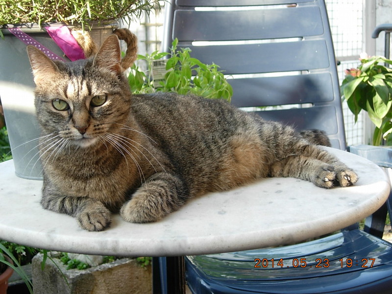 Habe noch ein Bild von Leilah gefunden, unsere Katze aus Spanien. Sie ist eine von drei Katzen die wenigstens hört, wenn sie gerufen wird.