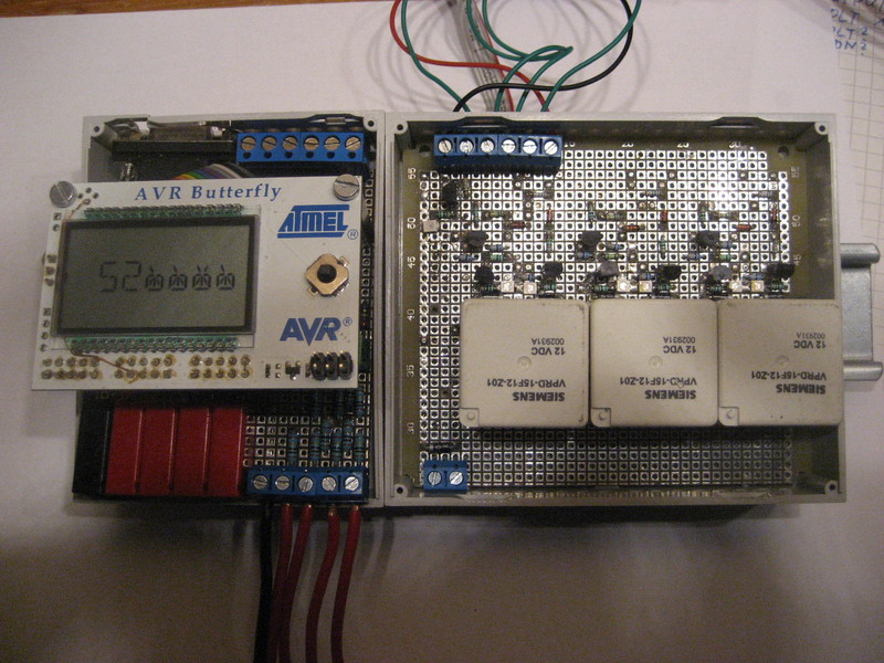 Der Prozessor kostet ganze 20€ und die Microcontroller-Platine ist seit über 10 Jahren zum Preis von unter 20€ im Handel - siehe Ebay "AVR Butterfly". Anbei erst mal 2 Bilder davon. Ich verwende Stromstoßrelais, da die keinen dauerhaften Steuerstrom verbrauchen: Die Relais: --> Link