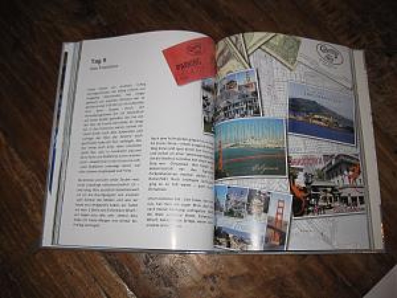 Zum Test habe ein A5 quer Fotobuch in Klebebindung bestellt. Die Blätter sind nicht so stark, wie mit Leporello – Bindung (hierfür werden zwei Fotos zusammengeklebt). Diese Klebebindung entspricht mehr einem Buch. Hier zwei gegenüber liegende Einzelseiten mit Text, hierfür habe ich ein Panorama geteilt.