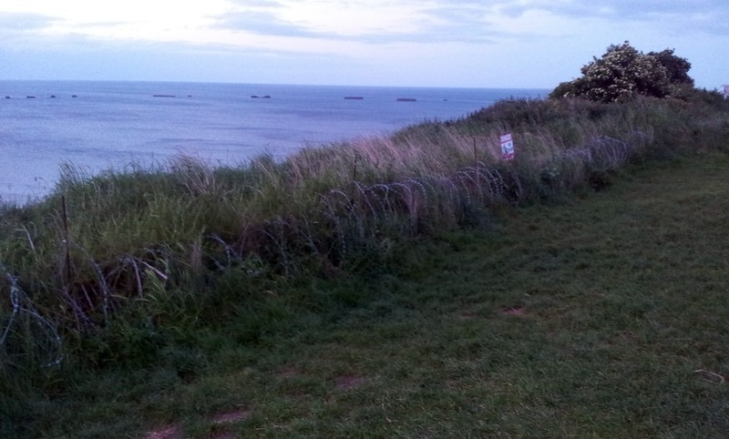 vielleicht ist der Parkplatz am Kino gemeint. Als wir jetzt dort waren, hing eine Kette davor. Auf dem eingezäunten Parkplatz daneben kann immer noch übernachtet werden. Kassiert wird meist morgens. Stand: 6/2012 Warnung - Die spinnen, die Franzosen!!! Hallo, wir waren mal wieder in Arromanches. Übernachtet haben wir oben am Kino auf der Klippe. Es muss wohl einen Abbruch an der Klippe gegeben haben, der schöne Wanderweg runter zur Stadt ist leider gesperrt. Aber anstatt normalen Stacheldraht für die Absperrung zu nehmen, wurde alles mit S-Draht gesichert! Sieht fast aus wie im Krieg! Gut, das es das Sauzeug im 2ten Weltkrieg noch nicht gab. Die Amis hätten wesentlich mehr Probleme gehabt! Für die, die nicht gedient haben: S-Draht oder auch NATO-Draht ist wegen der rasiermesserähnlichen Schneiden wesentlich gefährlicher als Stacheldraht. Welches kranke Gehirn hat sich sowas wohl ausgedacht. Teilweise ist der Draht schon komplett ins Unkraut eingewachsen und nicht mehr zu erkennen. Wehe dem Menschen (oder auch Tier) der da nicht aufpasst und da reingerät. Bild 1 - gesperrter Weg ![]() Bild 2 - gesperrte Klippe ![]() Bild 3 - teilweise eingewachsener Draht ![]() Wo ist das Problem, der Zaun ist überall am Rand. :gruebel: