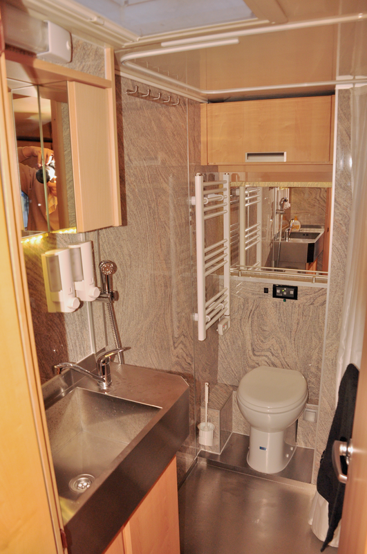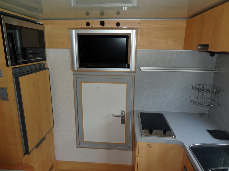 Hallo GermanKiwi, der Koffer ist hervorragend isoliert, 100 mm Dach, 65 mm Wände und 110 mm der Boden, innen und außen GFK. Alu schwitzt, da muss eine ordentliche Dampfsperre rein sonst haste ne Tropfsteinhöhle! :D Mir gefällt MAN, aber vor allem sind das langlebige Fahrzeuge. Den kann man mit Klasse 3 fahren, 7,49 Tonnen zulässiges Gesamtgewicht. Noch viel Spaß in Neuseeland :) Danke Moin, ich glaube jetzt ist es vollbracht, mein MAN ist fertig ausgebaut. Oder vielleicht auch nicht, man ändert sowieso immer mal wieder etwas! :D ![]() Den Fernseher habe ich in die Stirnwand eingelassen, dazu einen fetten GFK - Kasten von Außen angebaut, der sitzt genau hinter dem Spoiler so das er nicht sichtbar ist. Ein Sonnenschutz vom Fensterhersteller Velux hab ich zweckentfremdet und waagerecht eingebaut, der dient dem Fernseher als Staubschutz und schützt vor Kochschwaden. In das Staufach über dem Kühlschrank ist jetzt eine Micro - Backofenkombi verbaut. Habe neue Polster fertigen lassen, die aus dem Möbelhandel (Fertigteil) waren :stumm:, weiter noch ein kleines Podest unter den Tisch gebaut worden, ist bequemer für die Beine. Ne Staukastenklima habe ich ihm noch verpasst, würde mich nicht noch einmal für ne Dometic - Staukastenklima entscheiden, die kann zwar einiges , (heizen, entfeuchten, usw.) ist aber Hammerlaut :flop: Das erste Jahr fuhr unter dem Bett, das inzwischen an meinem Sohn vermachte, ATV Marke Polaris 850EFI mit. (großes Quad) Somit war es mir möglich das Bett, meinem Alter entsprechend, weiter runter und 1m weiter nach hinten zu setzen. :D Der gewonnene Meter ist der Platz zwischen Sitzgruppe und Bett. Bei der Gelegenheit sind alle Tanks vergrößert und nach Innen verlegt worden. Zusätzlicher Warmwasserspeicher von 35 Ltr. Elegna kam rein und ein vom Wohnraum aus zu erreichendes, weiteres Staufach unter dem Bett entstand. ![]() Für das Bad habe ich mir, nach dem das Kunststoffbecken bereits nach der zweiten Tour um den Sifon herum eingerissen war, :cry: ein Edelstahlbecken anfertigen lassen, groß, stabil und vor allem tief genug :lupe: Wünsche allen eine schöne Zeit, est Toll geworden, sieht sehr gut aus ... :daumen2: Respekt vor Deinen handwerklichen Fähigkeiten .. :) :daumen2: Formvollendet. Das Ding ist nicht nur praktisch und funktionell gebaut, es strahlt eine Menge Gemütlichkeit aus, die ich von den Bildern her selten selbst in hochpreisigen Mobilen gesehen habe. Ich glaube, du könntest ein ganz Großer in dieser Branche werden. Leider hättest du dann keine Zeit mehr zum Verreisen. :lach: Kann mich den bewundernden Aussagen der Vorgänger nur anschließen! Super!!!!!!! Eine Frage treibt mich aber noch um: Wie hast du das mit dem Durchgang gelöst? Danke für das Lob! :) In der Regel benutzen wir die seitliche Eingangstür im Aufbau, der Durchschlupf dient dem Notstart, aus heutiger Sicht überflüssig, kostet nur nen haufen Euros. Der Überdachte Spalt zwischen Aufbau und Fahrerhaus ist allerdings wie man auf dem Foto sieht, sehr beliebt :lach: ![]() est Staunen , Bewunderung , Respekt und Hochachtung , auch vor der Entscheidung diesen Traum auf Rädern ab zu geben . Erst auf der Suche eines Selbstausbau's oder einer LKW Basis zum Ausbauen ( 7,5 oder drüber zum Ablasten ) auf Ebay bin ich auf diesen Thread gestossen , die so genaue Beschreibung von Anfang an macht Mut sich an so ein Projekt ran zu trauen , wenn auch nicht ansatzweise auf so hohen Niveau ( und dem gigantischen finaziellen Investitionen ) . Möge das Auto in gute Hände kommen die es zu schätzen wissen , und sie ein passenderes Mobil für sich finden . Nils So nu isser wech, mein MAN! :stumm: :cry: Neue Aufgabe Kastenwagen ausbauen, ich werde berichten! :) Wahrscheinlich wird es ein Fiat Ducato, L5 H2. 8) Hallo est, auch wenn er nicht mehr da ist - war wohl ein schönes Projekt! Die Bilder sehen wirklich toll und überzeugend aus! :wink: Mich würde mal interessieren, ob du nicht mit der verbleibenden Gewichtszuladung zum zulässigen Gesamtgewicht zu kämpfen hattest!? Oder hattest du mit den 7,5t genügend Gewichtsspielraum? rastlos Moin, komme erst jetzt dazu Dir zu antworten, sorry! Probleme mit der Zuladung gab es für mich zu keiner Zeit, runde 1,4 Tonnen waren da möglich, die habe ich nie benötigt :D |