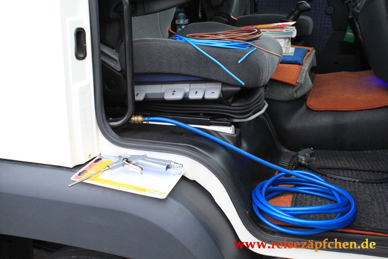 Es gibt beim Vario wirklich verschiedene Ausführungen vom Druckregler, z. B. Wabco 975 303 0... oder 975 303 4... Die 0-Version hat keinen Druckluftanschluß, die 4-Version ist mit Druckluftanschluß. Man kann ihn umrüsten, weil der Druckluftanschluß nur ein Ventil ist (einfach von einem defekten Druckregler umschrauben). Leider kann ich keine Bilder posten. Doch die Wabco-Teile sind im Internet abrufbar. Außerdem sollte in der Betriebsanleitung das Reifenfüllen vom Druckregler beschrieben sein. Und dann erklärt jede Mercedes-Werkstatt den Vorgang und wo der Regler mit/ohne Anschluß sitzt. lg ruptech Wir haben seit geraumer Zeit auch einen separaten Druckluftanschluss + zusätzlichen Kompressor an Bord: ![]() ![]() Nun haben wir keine Luftprobleme mehr, auch bei längeren Standzeiten. Und WAS hast Du da an Zusatzkompresoor :?: |