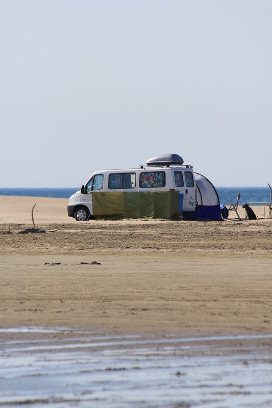 Achtung die Sandstrasse ist nur am Anfang gut befahrbar . Ansonsten weicher Sand .! Das Gerücht geht um das schon am 15.9 der Strand geschlossen wird . Wir sind weitergefahren , aus cap d'agde !