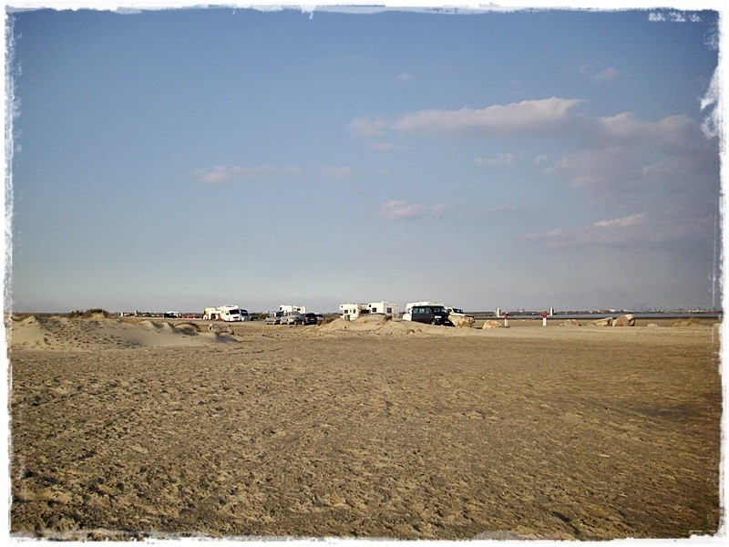 Vielleicht ist das jedes Jahr über Winter so? Die Wohnwagen wurden schon Tage vorher abgeholt. Am 1.10. ist endgültig Schluss dort, dass ist allgemein bekannt. Am 14.10.2011 haben wir da übernachtet, also es ist schon der Hammer, aber wir haben nicht am Strand direkt geschlafen, sondern auf diesem Parkplatz davor. Für uns hat es gereicht, weil es zum Baden zu kalt ist.