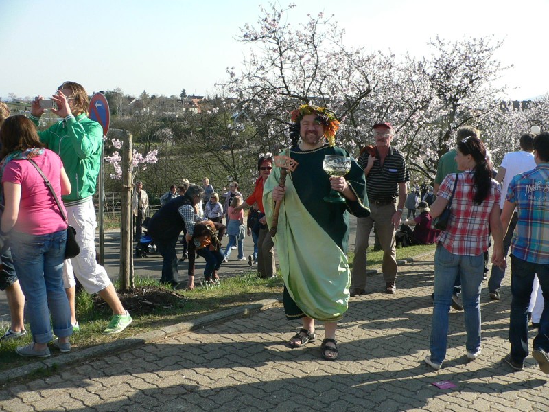 Die Mandelblüte hat aber schon ihre höchste Zeit überschritten und die Blütenblätter fliegen schon im Wind herum. Trotzhdem hat noch die eine oder andere Buschenschänke offen gehabt - und es gab auch locker noch freie Plätze zum hinsetzen. Das ist halt der Vorteil, wenn man etwas später hinfährt und nicht dann wenn alle fahren. Das Wetter ist nach wie vor toll. Habe die Ehre Gogolo
