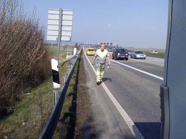 dann hab ich dich um die Mittagszeit auf der A8 kurz vor Karlsruhe überholt. (Roller auf dem Anhänger quer zur Fahrbahn)