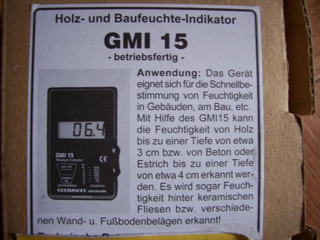 Verwendet wurde ein kapazitives Feuchtigkeitsmessgerät der Firma Greisinger